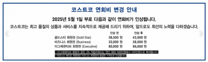 - 이그제큐티브 멤버십 : 기존 80,000원에서 86,000원으로 인상 (7.5% 증가)