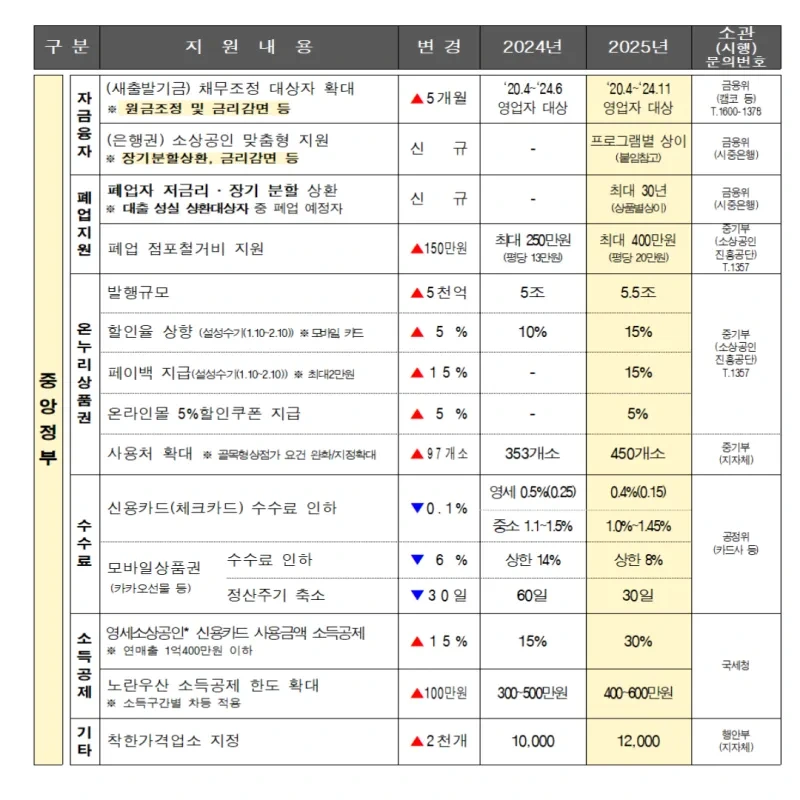 이 표에는 2024년과 2025년의 지원 정책이 상세히 나와 있어요. 특히, 재정 지원의 조건과 한도가 얼마나 증가했는지 한눈에 볼 수 있어서 매우 유용해요.