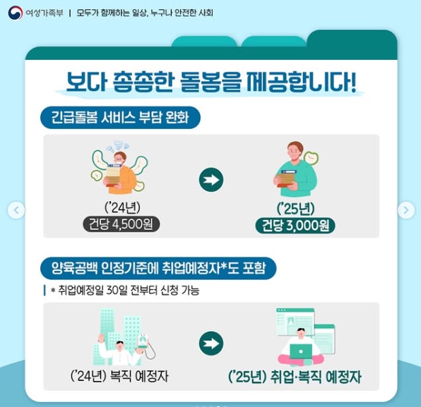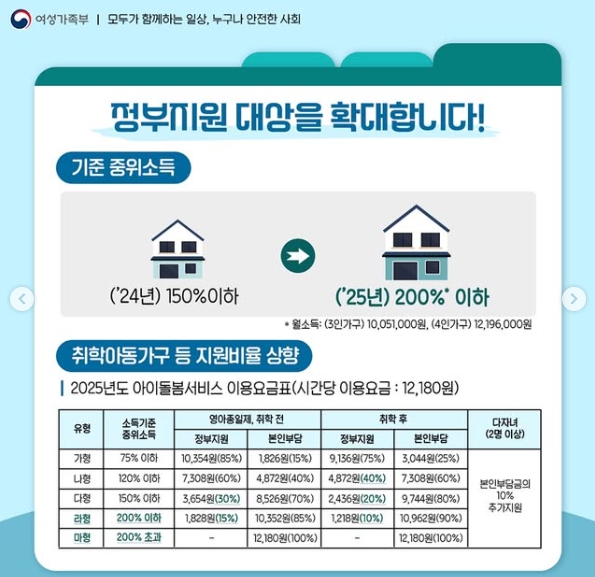 2025년부터는 아이돌봄서비스의 지원 대상이 확대됩니다. 기준 중위소득 150% 이하에서 200% 이하로 변경되면서 많은 가정이 이 서비스의 지원을 받을 수 있게 되죠. 이에 따라 지원받을 수 있는 가구 수가 11만 가구에서 12만 가구로 늘어난다고 하니, 더 많은 부모님들이 혜택을 누릴 수 있을 것으로 보입니다.